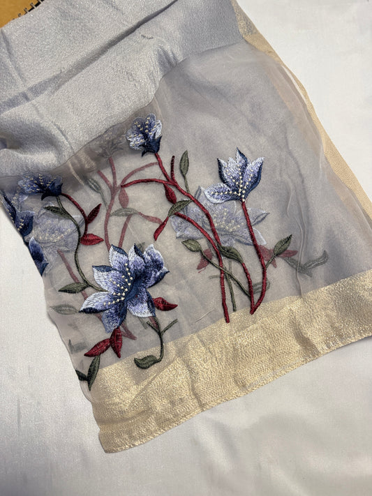Lilies Embroidered Organza- Luxury Hijabs- Silver