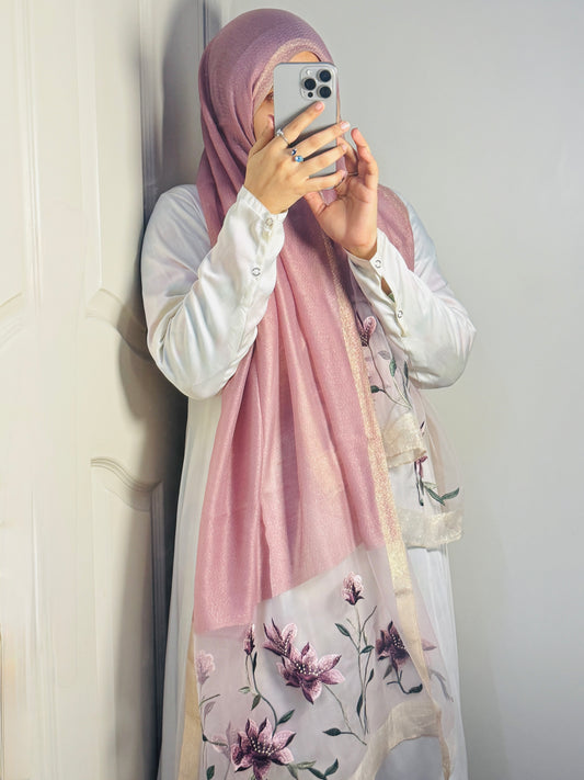 Lilies Embroidered Organza- Luxury Hijabs- Baby Pink