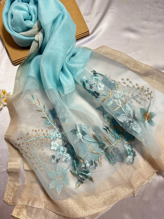 Rose Embroidered Organza- Luxury Hijabs- Ice Mint