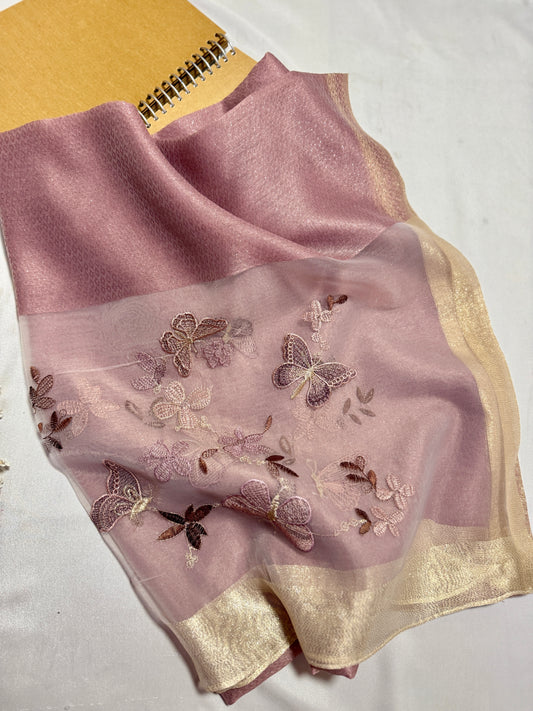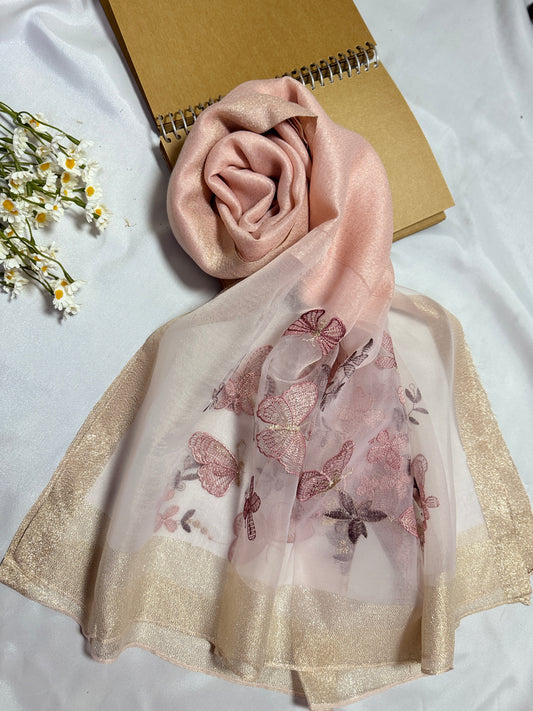 Butterfly Embroidered Organza- Luxury Hijabs- Rose Pink