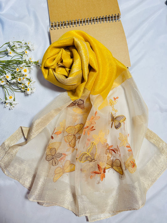Butterfly Embroidered Organza- Luxury Hijabs- Mustard Yellow