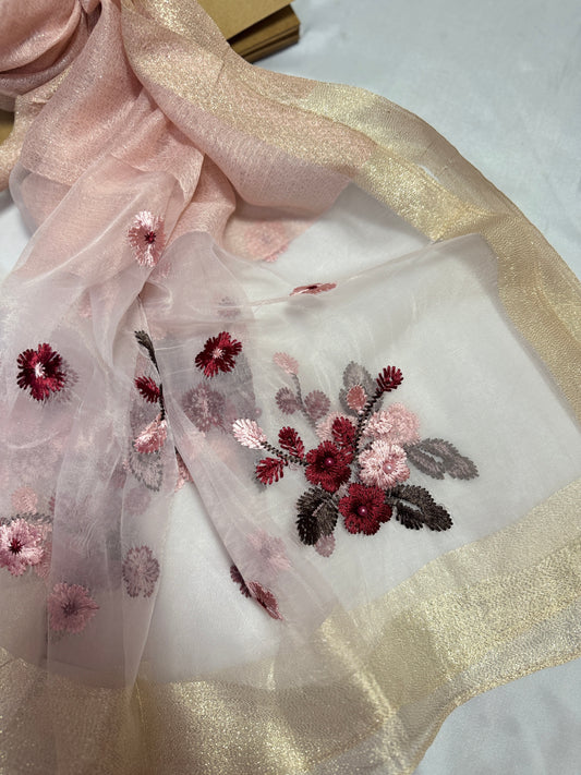 Pearl Floral Embroidered Organza- Luxury Hijabs- Baby Pink