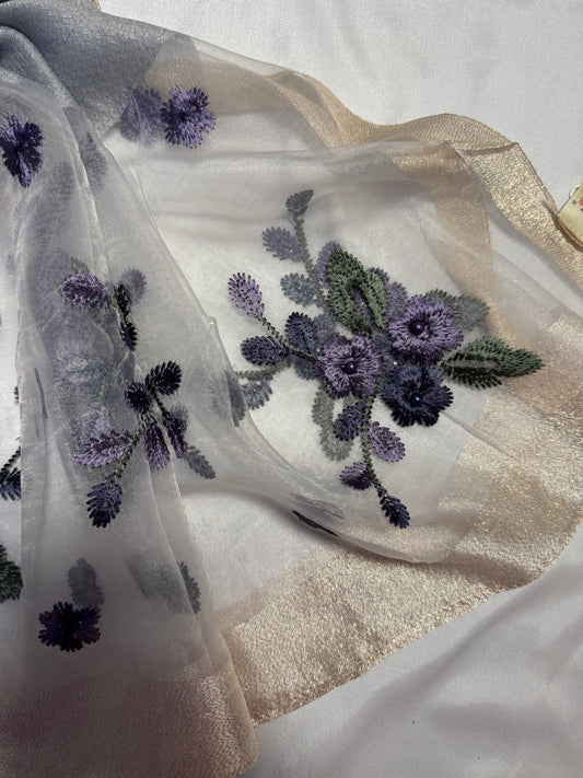 Pearl Floral Embroidered Organza- Luxury Hijabs- Lilac Muave