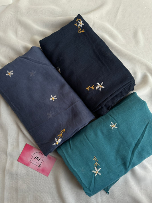 Embroidered Floral Hijabs- Jeans Blue