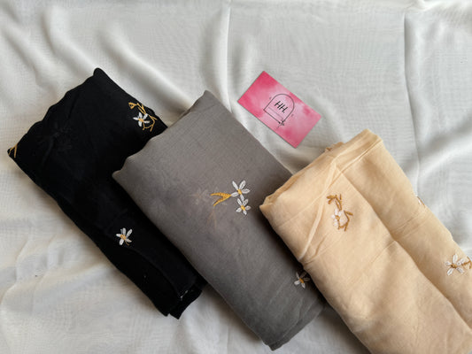 Sold outEmbroidered Floral Hijabs- Black