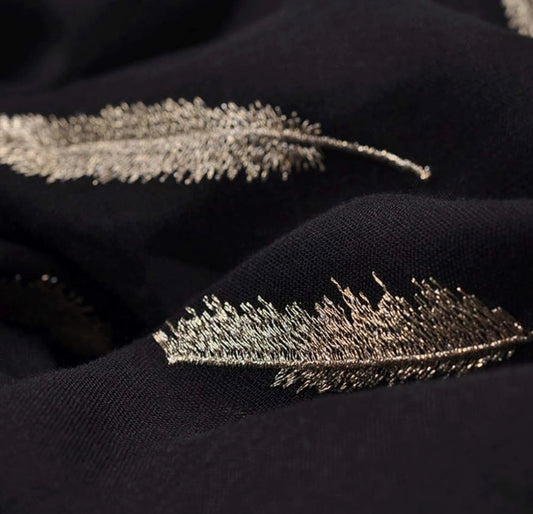 Monochrome- Embroidered Zari Feathers- Luxury Hijab