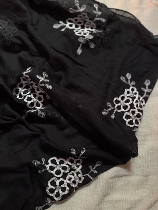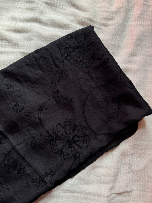 Monochrome- Embroidered Black on Black- Luxury Hijab