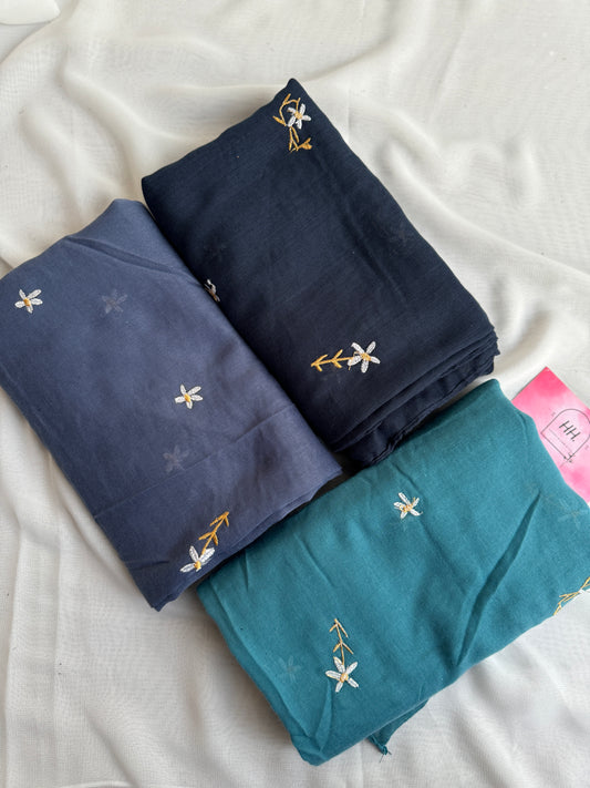 Embroidered Floral Hijabs- Jeans Blue