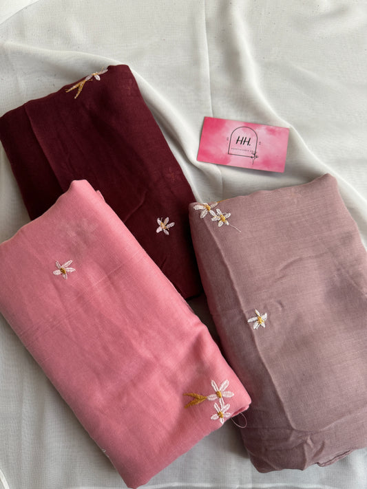Embroidered Floral Hijabs- Light Pink