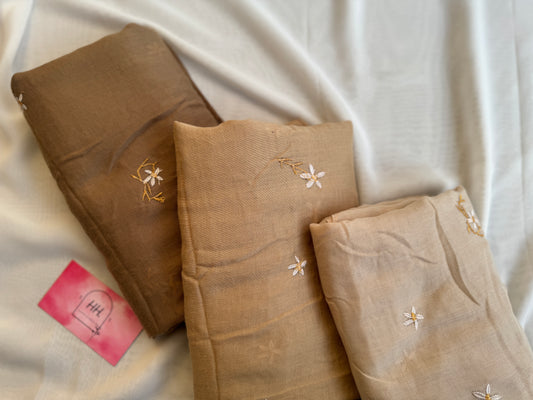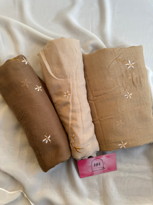 Embroidered Floral Hijabs- Tan