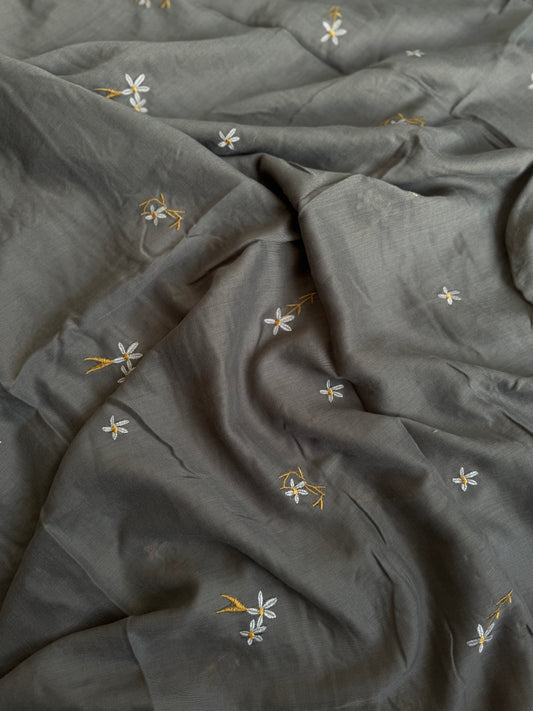 Embroidered Floral Hijabs- Basic Grey
