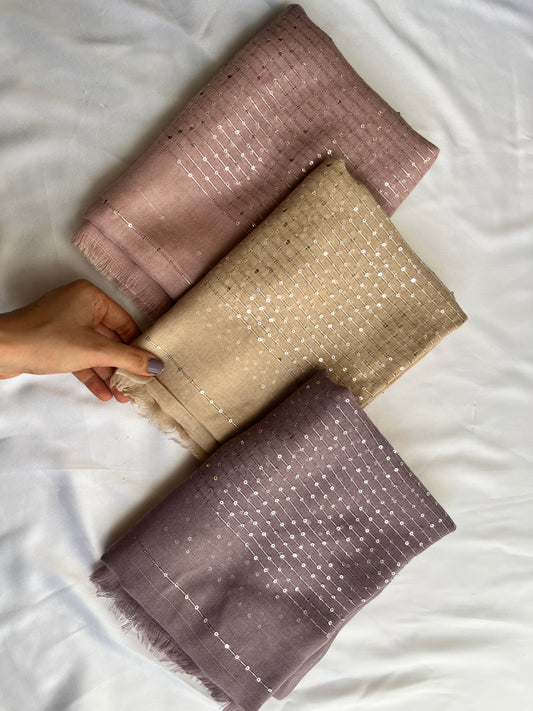 These hijabs are made of aesthetically pleasing viscose fabric, embedded with sequins cords for a stunning fancy look.