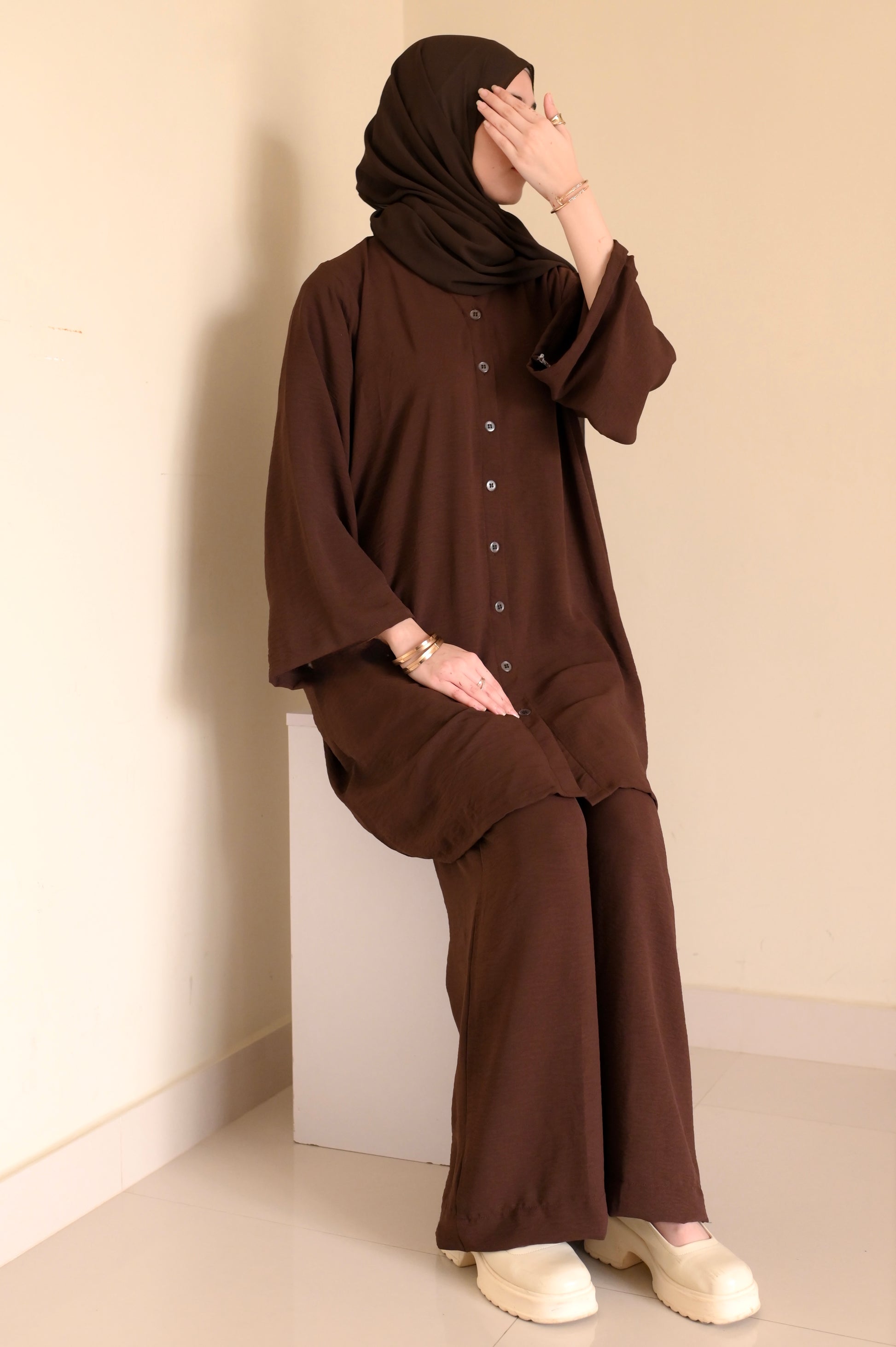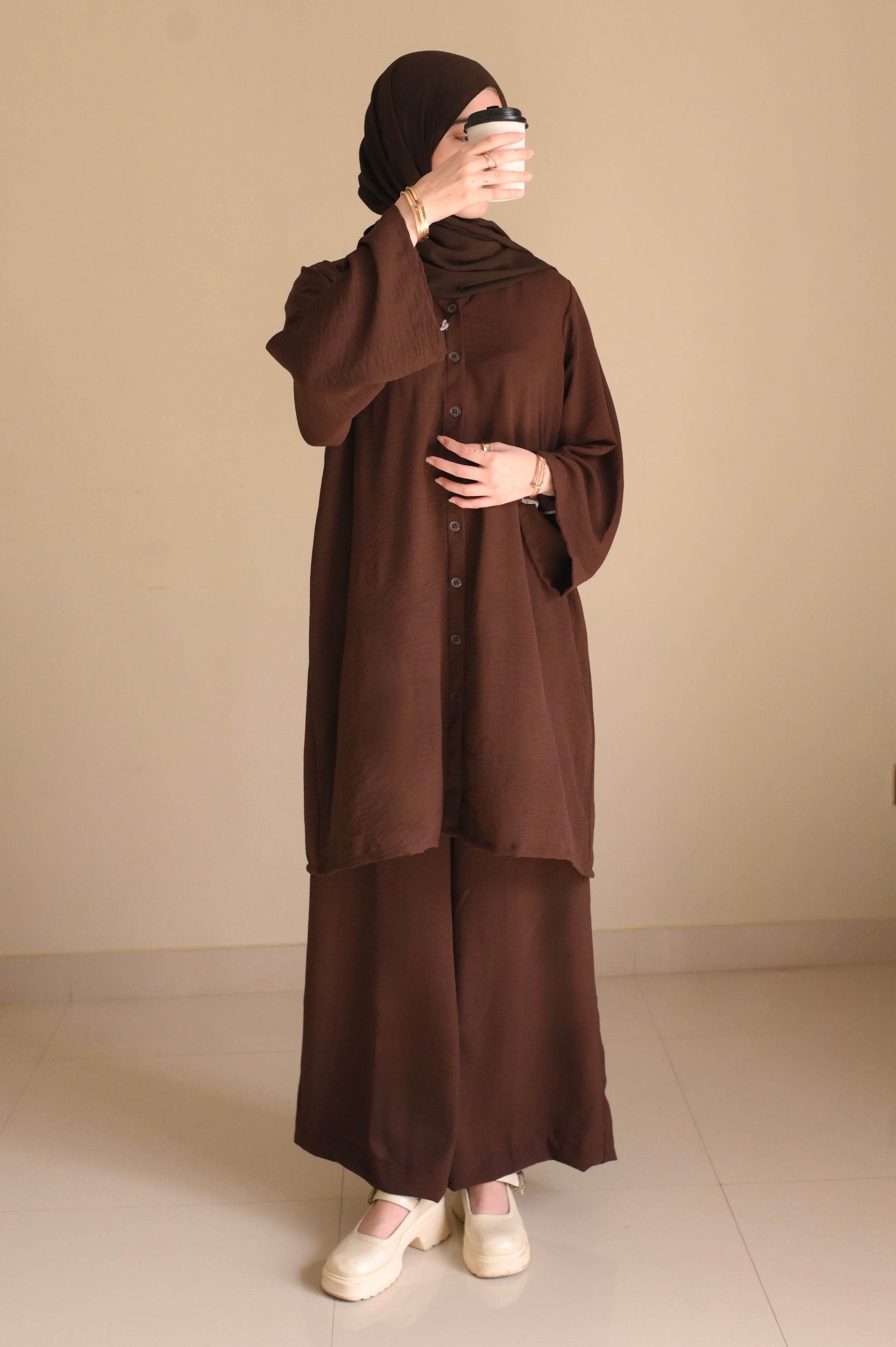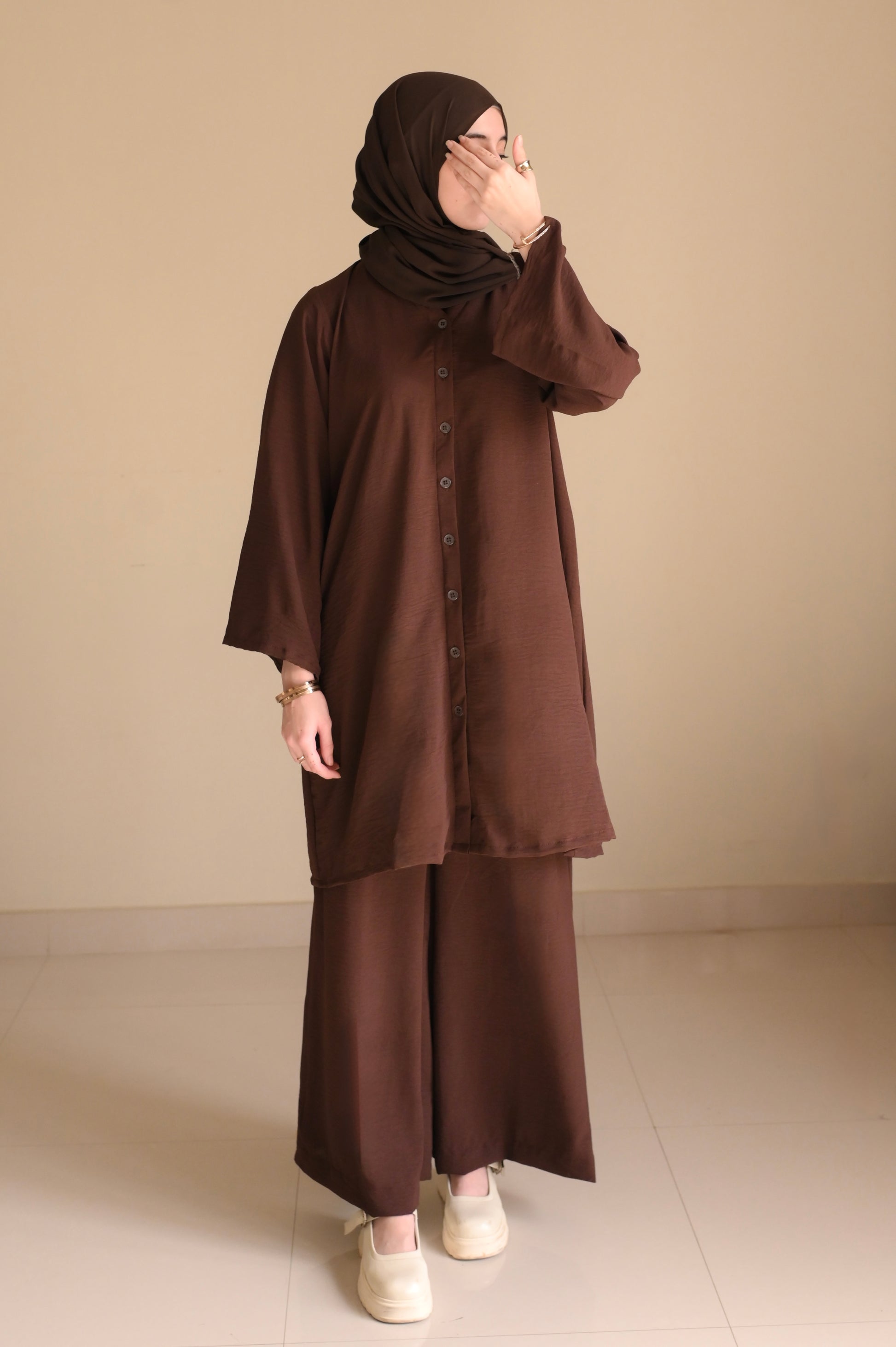 Button Down-Modest Coord Set- Choco