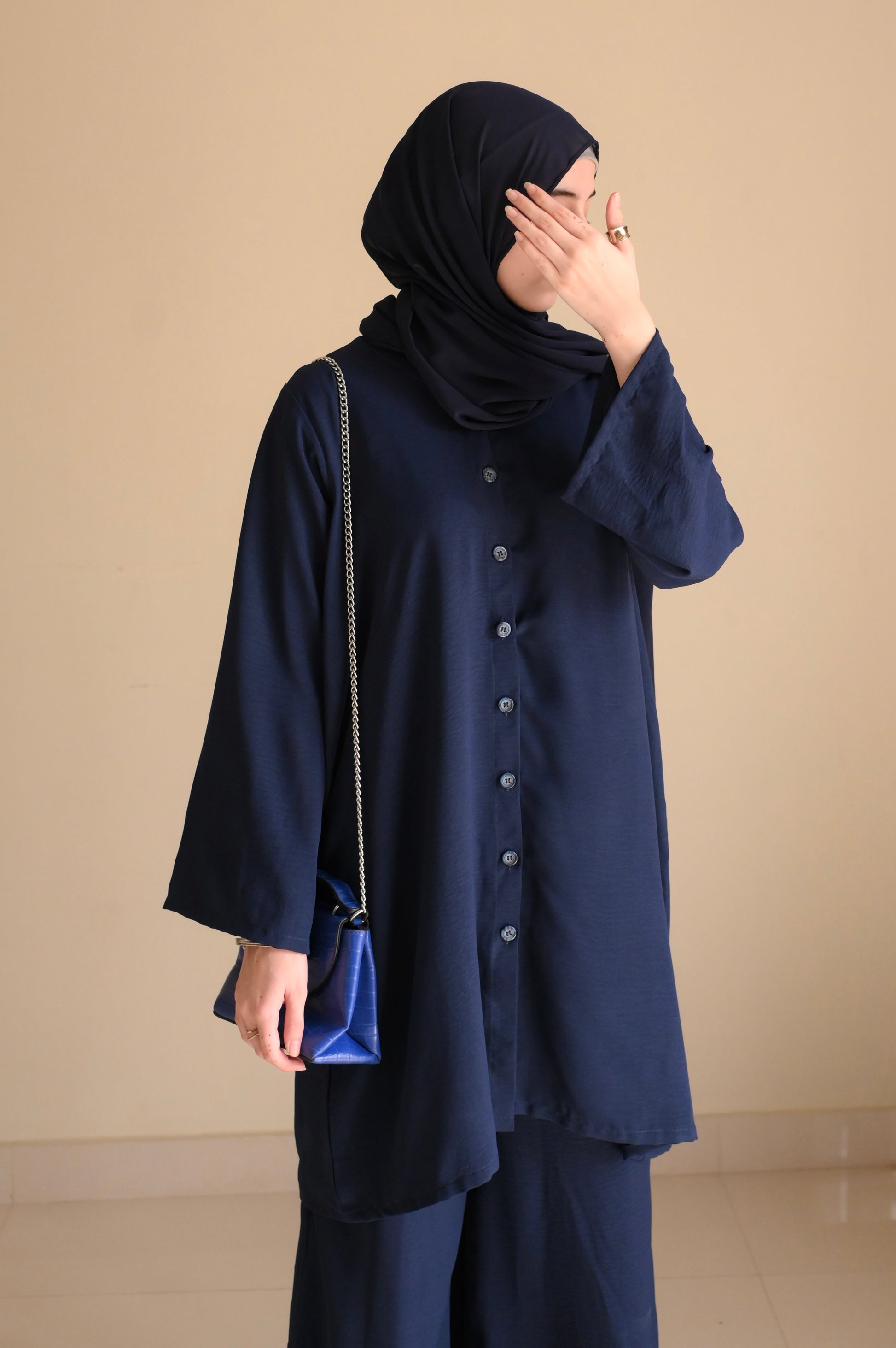 Button Down-Modest Coord Set- Navy Blue