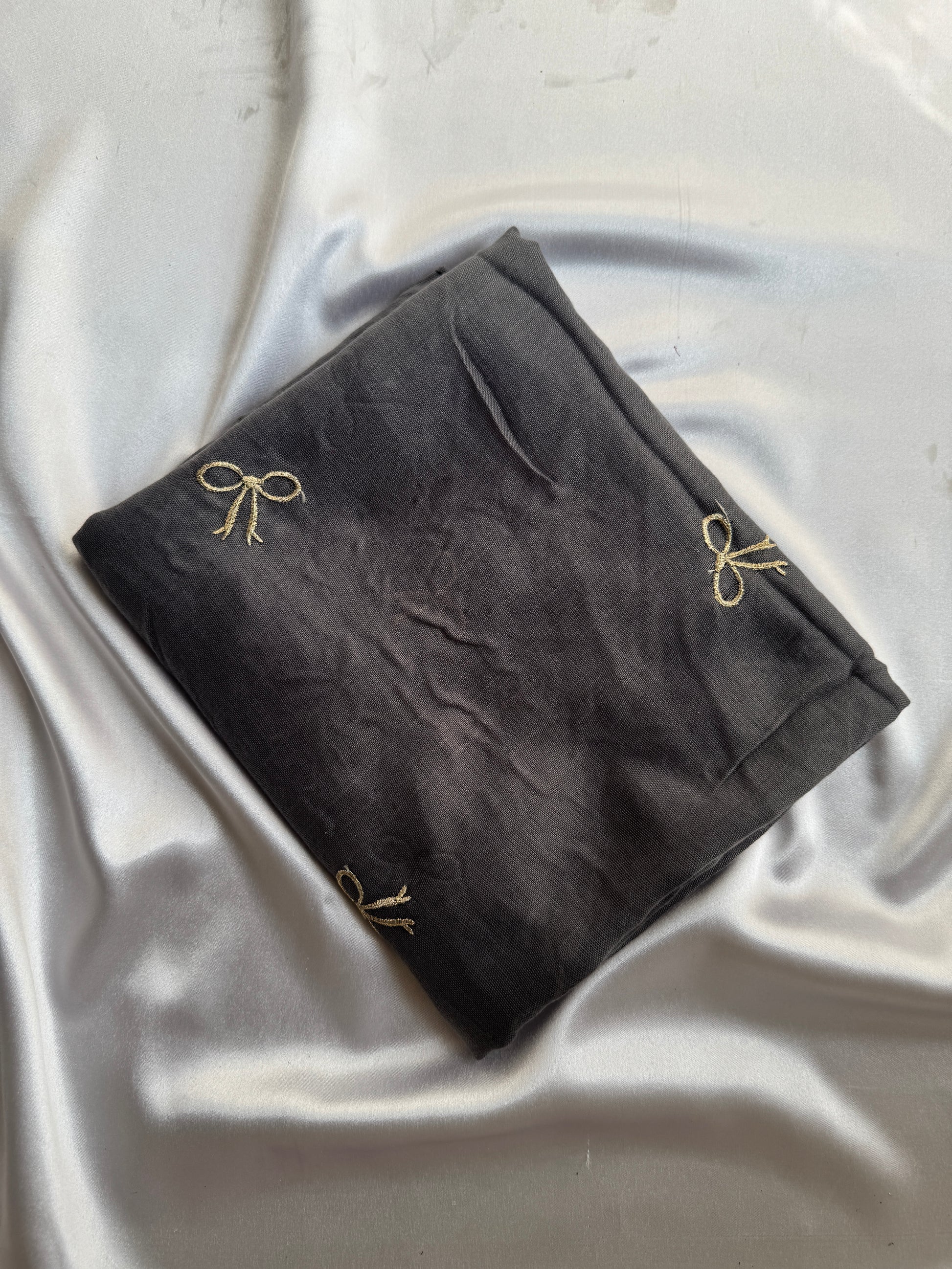 Embroidered Bow Hijabs- Ash Grey