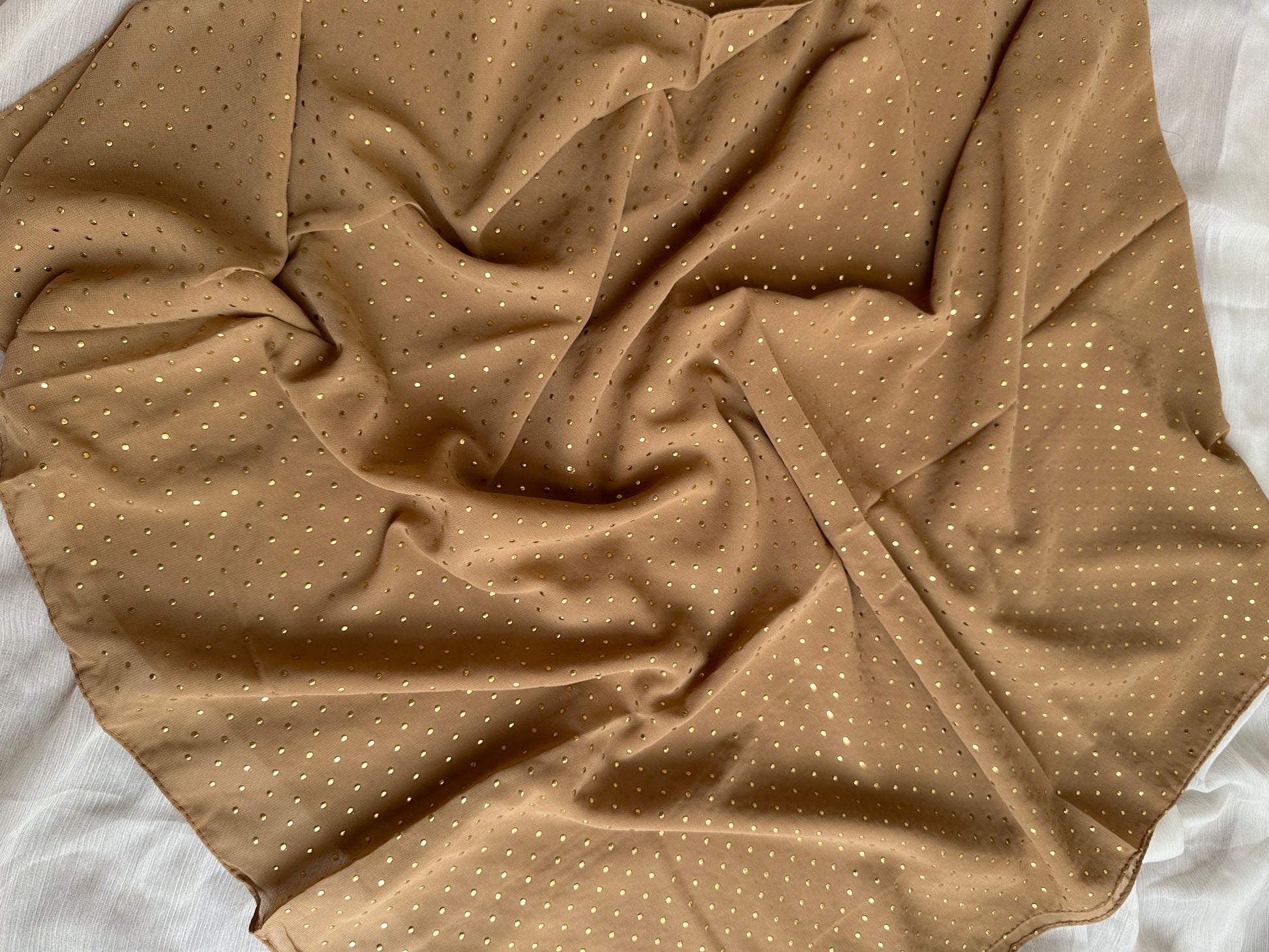Gold Dewdrops- Georgette Chiffon- Camel Brown
