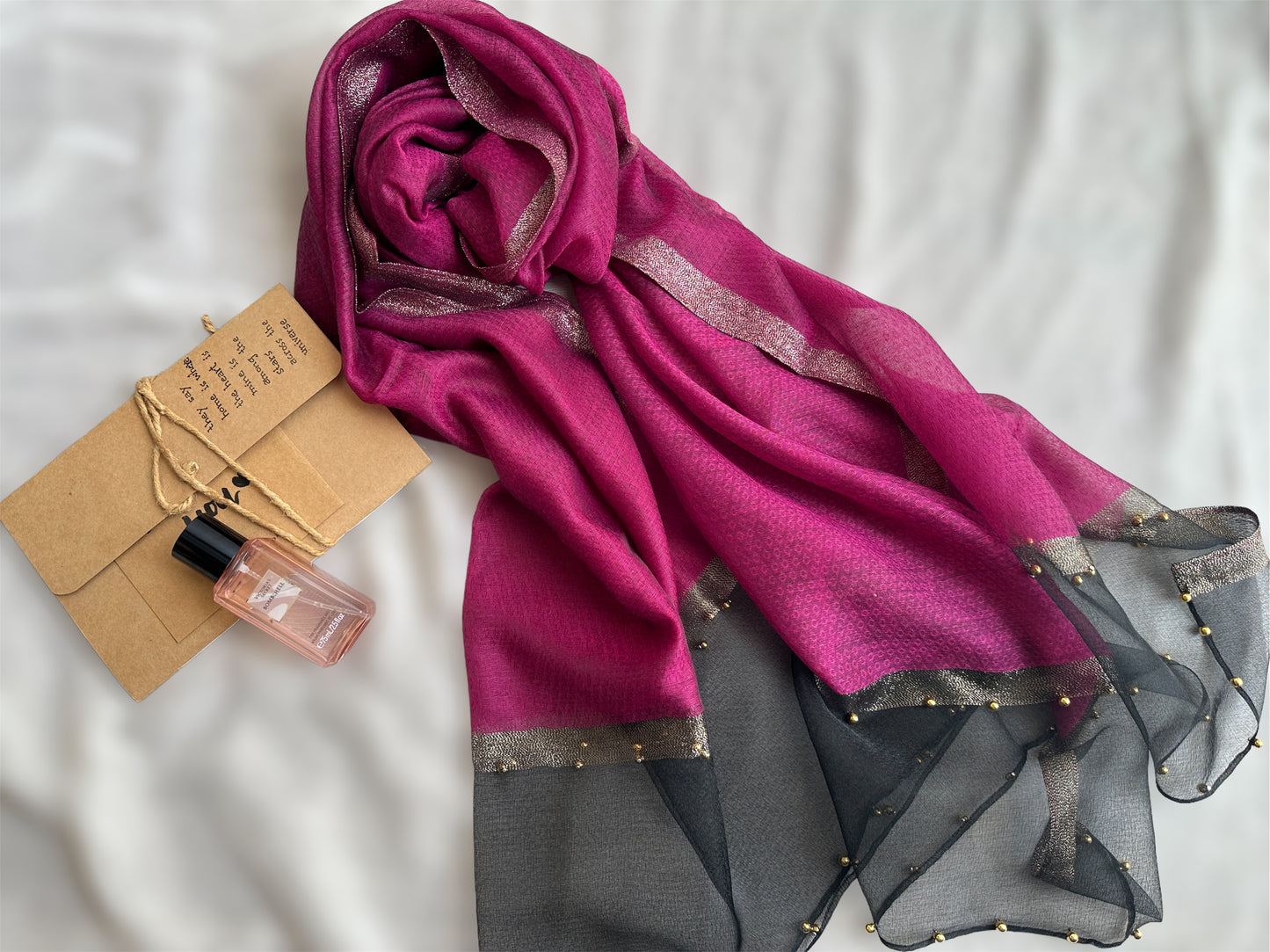 Luxe Organza Hijabs are available in multiple colors to match and pair with all kinds of party outfits, making your appearance flawless. Every scarf comes with a merged shimmer border which adds effortless style to your look.