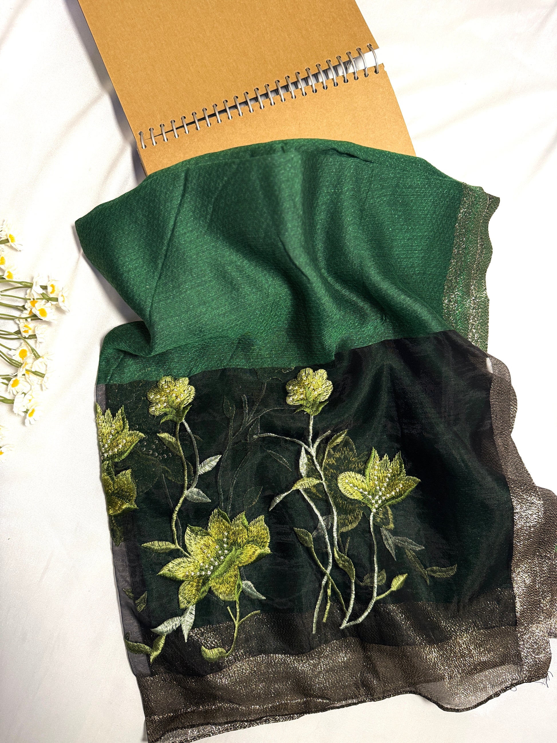 Lilies Embroidered Organza- Luxury Hijabs- Dark Green