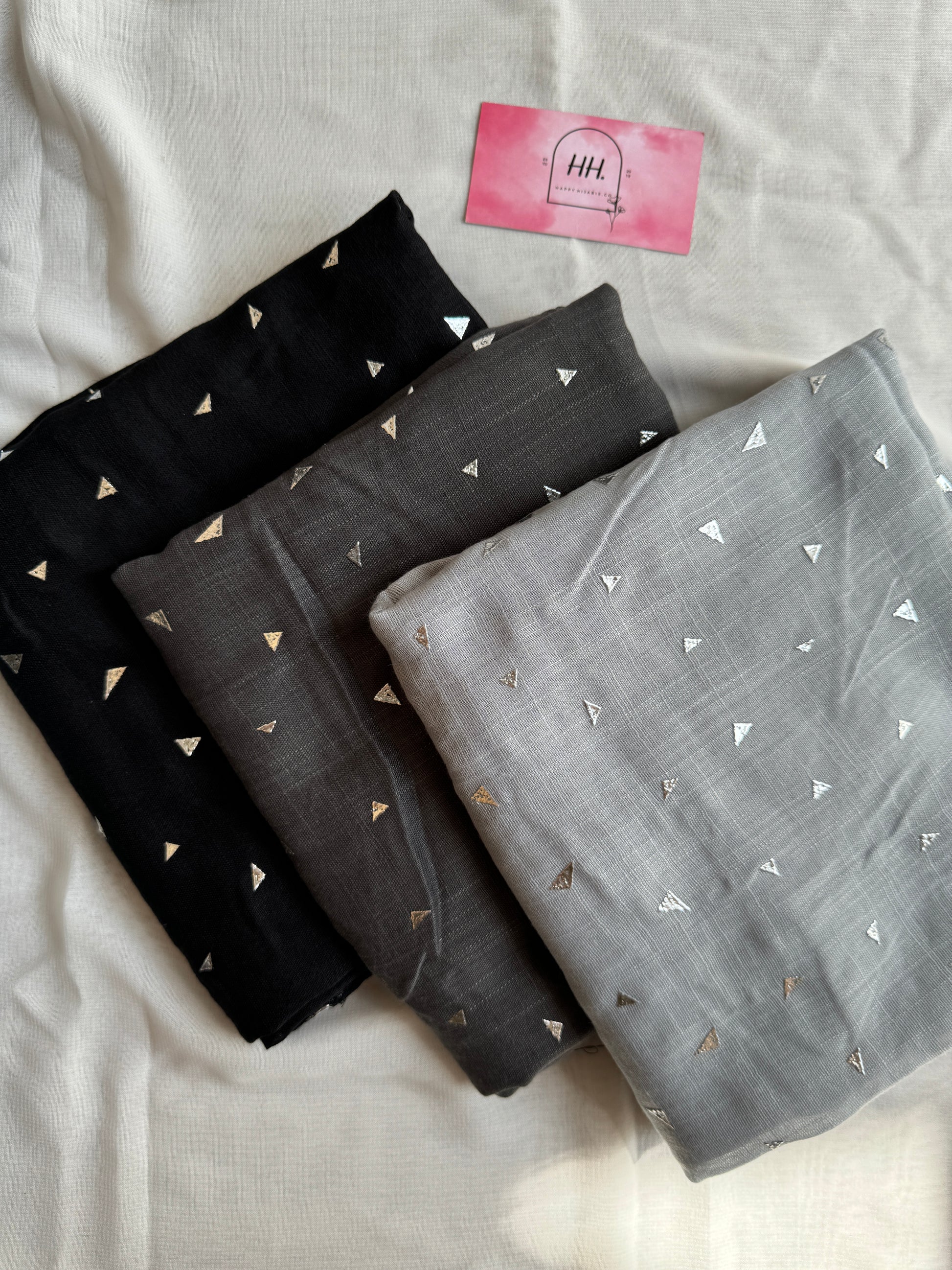Blow up your boring outfits with these super gorgeous foil-printed hijabs. The material is soft, flowy, breathable and easy to manage. What else does one want?? 🤩
