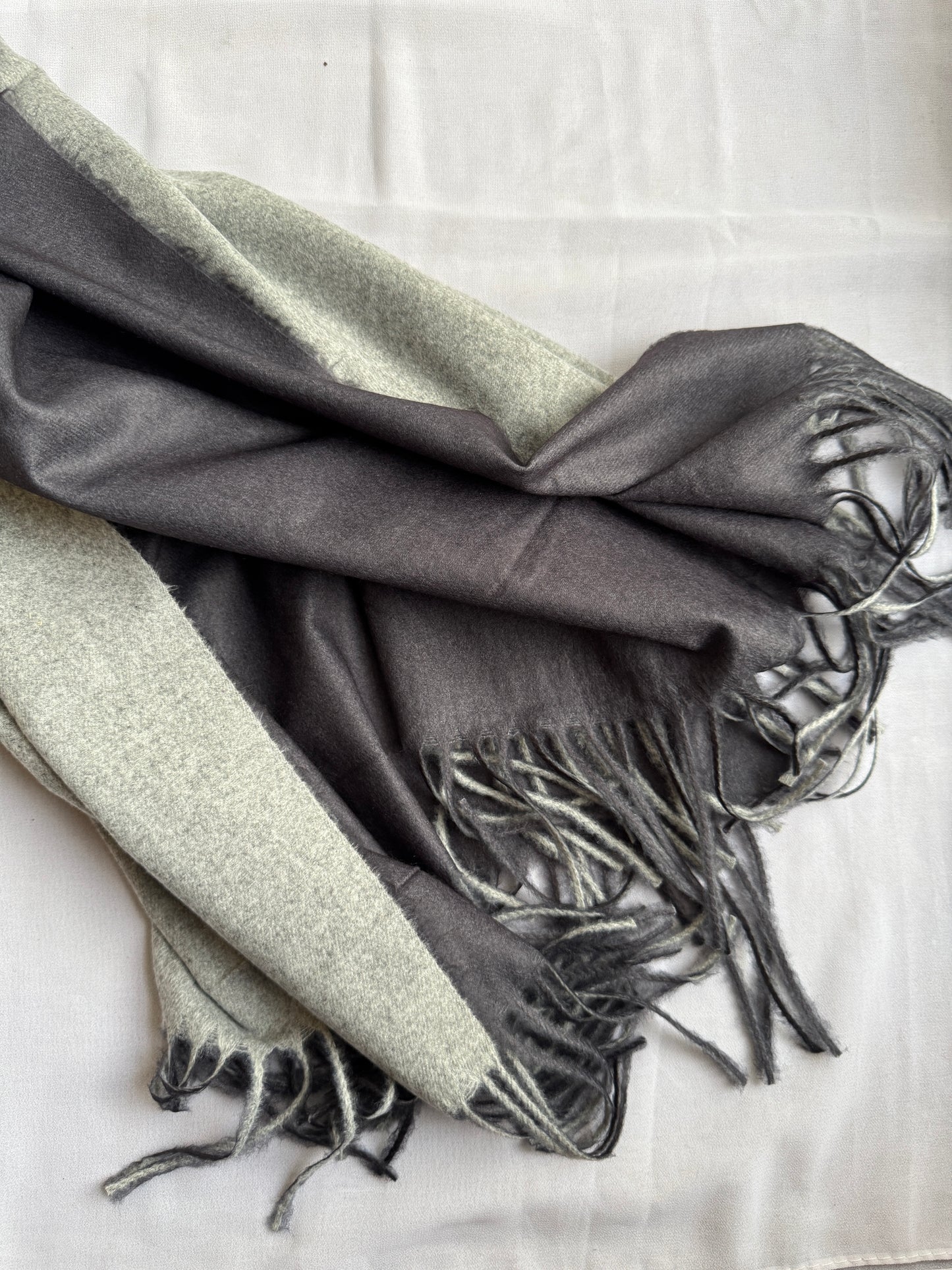 Reversible two-color pashmina shawls are elegant and versatile accessories made from pure pashmina or a pashmina-wool blend, offering both warmth and style. These shawls feature dual shades on either side, allowing you to match them with a variety of outfits. Typically handwoven or loom-made, they are lightweight yet cozy. Reversible two-color pashmina shawls are a timeless addition to any wardrobe, combining practicality with refined elegance.